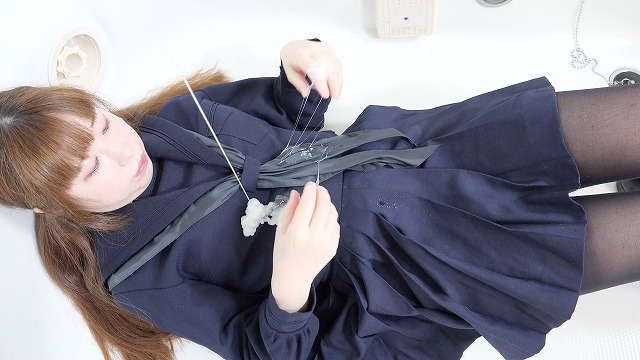 她穿著校服。她穿著制服,身上卻沾滿了白色液體。她的整個身體都被黏糊糊的液體覆蓋著。