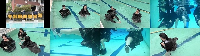 SW306 冬服体験学習(ブレザーやカーディガンも着用して泳ぎ難さ満載)