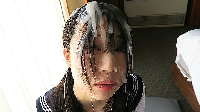 She is wearing her school uniform. She is covered in slimy liquid while still wearing her clothes. And her whole body becomes slimy.