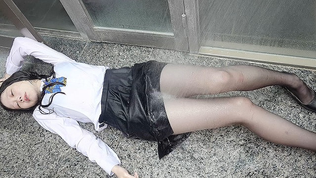 她穿著公司製服。她讓我穿著衣服把她弄濕。而且她全身都濕透了。